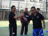 まず「タグラグビーを教えることも大切だが、タグラグビーで何を教えるかを考えることも大切」という指導する際のポイントに始まり、タグラグビーはしっかりとした挨拶から、相手をほめる・励ます等、子供達のコミュニケーション能力を高めるスポーツであるとの説明を受け、指導が開始しました。