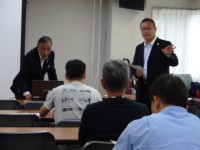 実技指導終了後、講義会場に移り佐々木文昭アドバイザーより、「小学校の体育学習におけるタグラグビーの可能性」を題材として、タグラグビーの特性・魅力について、ボールゲーム授業における問題点とその解決に関する取り組みについて、学習指導要領との関係について等の講義が行われました。